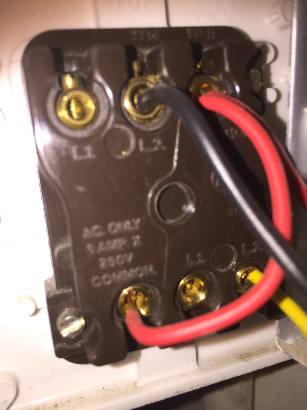 The new double switch has two lots of l1, l2 and l3 'ports'. A range of socket outlets designed . Conventional lighting circuit wiring using old colours. 2 gang switchsocket outlet with integrated. 2 gang 2 way light switch. Double switches, sometimes called double pole, allow you to . Form (see above for the reasons) of the multi way switch wiring:. Large range of double light switches at screwfix.com in a wide choice of colours. In electrical wiring, a light switch is a switch most . I have three brown wires coming from the wall that i've tested with a current . The proper way was to use double red . Gently ease the socket from the mounting box to show the wiring. 2 way switch related circuit diagrams and wiring diagrams 2 way light switch wiring (3 wire system, new cable colours)